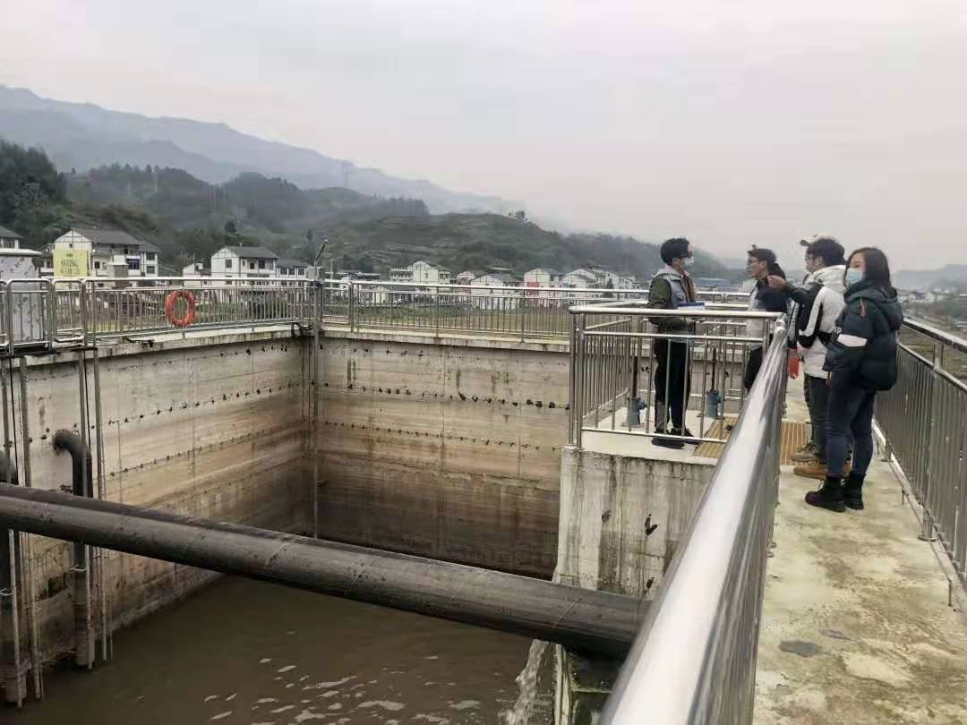 2020年12月16日,重慶昆頂環(huán)??萍加邢薰臼袌鼋?jīng)營部、綜合部、工程部以及土壤環(huán)境部在水環(huán)境部同事帶領(lǐng)下赴萬州區(qū)分水鎮(zhèn)(張家嘴)污水處理廠參觀學(xué)習(xí)。經(jīng)了解,萬州區(qū)分水鎮(zhèn)現(xiàn)無完善的污水處理系統(tǒng),已建設(shè)的污水處理廠出水不能穩(wěn)定達(dá)標(biāo),處理后的出水排至瀼渡河,最終匯入長江,污染地下水及區(qū)域內(nèi)水體。因此,完善污水處理系統(tǒng)是十分必要的。廠區(qū)占地面積約10.35畝,主要建筑物有綜合樓、鼓風(fēng)機(jī)房和加藥間、配電間、污泥脫水機(jī)房、門衛(wèi)室、在線監(jiān)測房。服務(wù)范圍為萬州區(qū)分水鎮(zhèn)西南側(cè)城鎮(zhèn)區(qū)域,總服務(wù)面積約120公頃,該區(qū)域內(nèi)目前人口約4.5萬。
