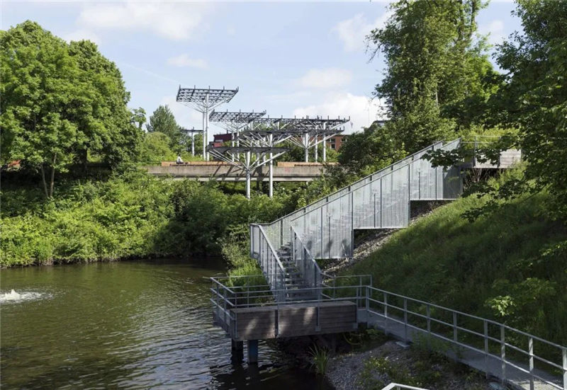 該公園變革性的影響在于其生態(tài)可持續(xù)性所激發(fā)的社會(huì)可持續(xù)性與社會(huì)公正。沿河岸而建的數(shù)條步道將周邊的社區(qū)與這片活力四射的景觀串聯(lián)為一體,這也是近百年來(lái)首次將河流的邊緣向群眾開(kāi)放。