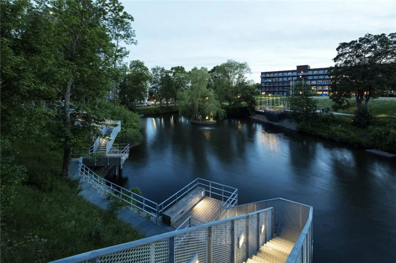 而改造之后的公園則滿布青翠、生機(jī)勃勃,使得康涅狄格州的生態(tài)及社會(huì)結(jié)構(gòu)得到了優(yōu)化。在與工程師及生物學(xué)家的通力合作下,團(tuán)隊(duì)所設(shè)計(jì)出的景觀不但修復(fù)了水陸生環(huán)境,更通過(guò)修復(fù)渠道般的河流減少了洪水泛濫,同時(shí)也引入了數(shù)百種新型本土植物。