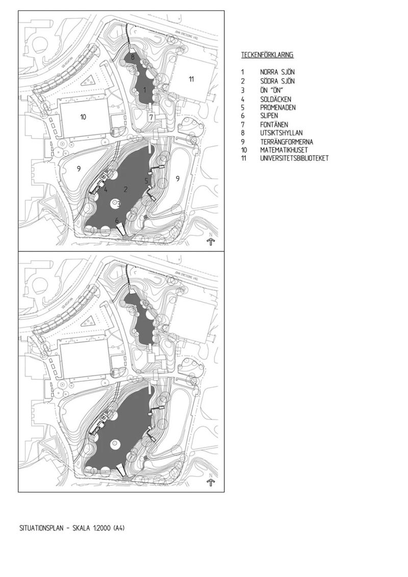 這個(gè)校園景觀項(xiàng)目便是針對(duì)如何補(bǔ)救上述缺點(diǎn)的一個(gè)解決方案,這塊場(chǎng)地相當(dāng)?shù)碾[蔽,而且風(fēng)還很大,不過(guò)有一個(gè)部分是突出的:兩個(gè)池塘周圍的區(qū)域。這塊區(qū)域原來(lái)是一個(gè)舊的粘土采石場(chǎng),以前用來(lái)供應(yīng)制磚原料,粘土坑是地下的深井,如今已充滿了水。與周圍開(kāi)闊、傾斜的地面相比,這里有著引人注目的背景環(huán)境:在邊緣處有一個(gè)急劇的下降,近乎垂直。這里的氣候不同于校園的其他地方,茂盛的植被可以抵御風(fēng)的吹拂,濱水的特點(diǎn)同時(shí)優(yōu)化了場(chǎng)地質(zhì)量,這應(yīng)該是學(xué)校發(fā)展新社交中心的一個(gè)良好開(kāi)端,多年來(lái)它一直缺乏這種社交屬性。